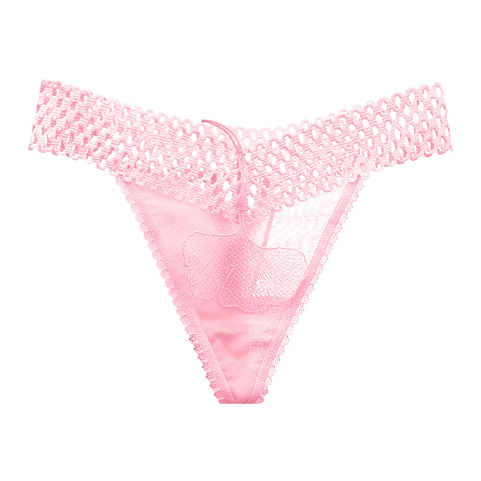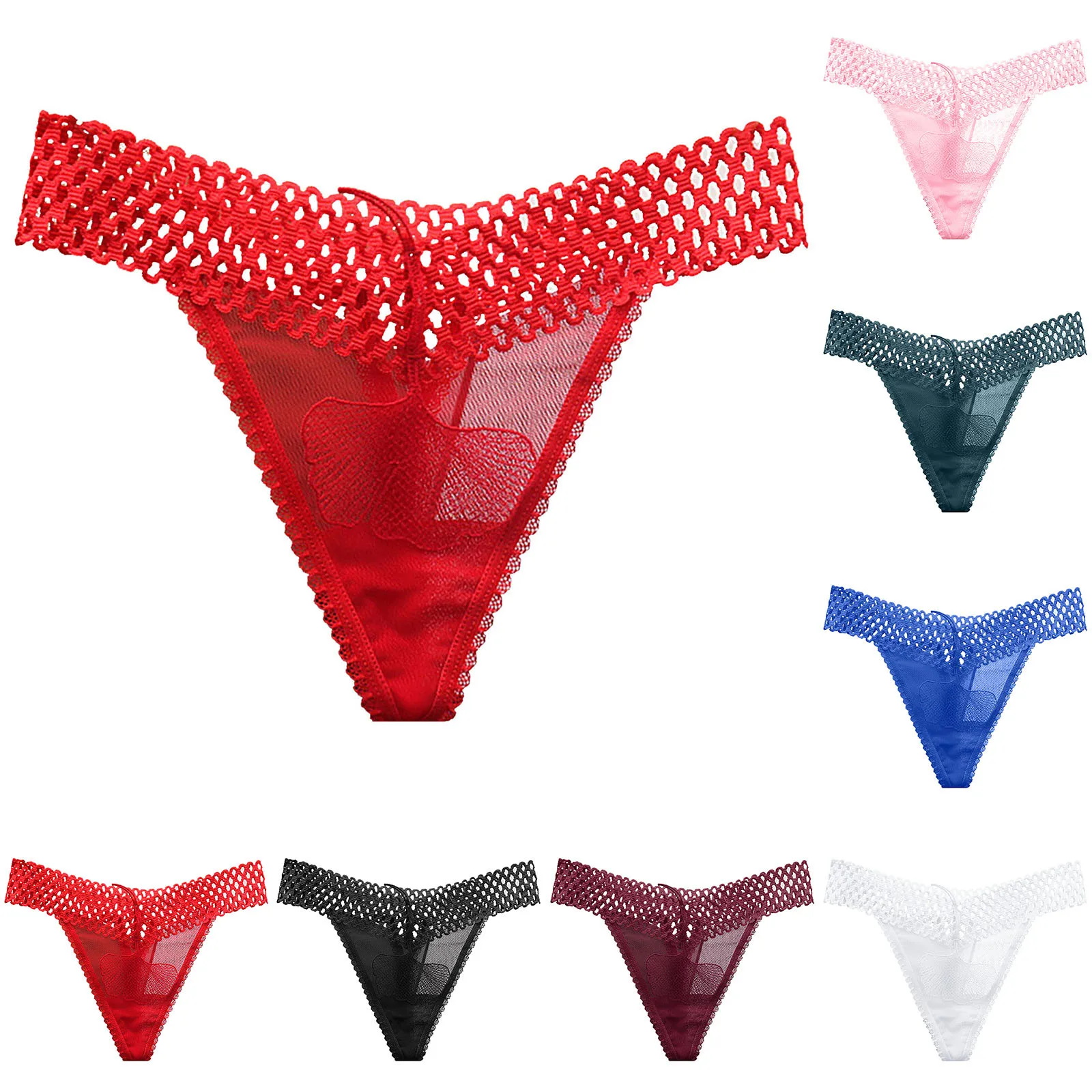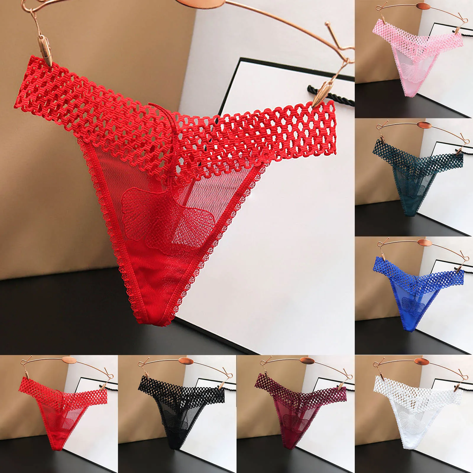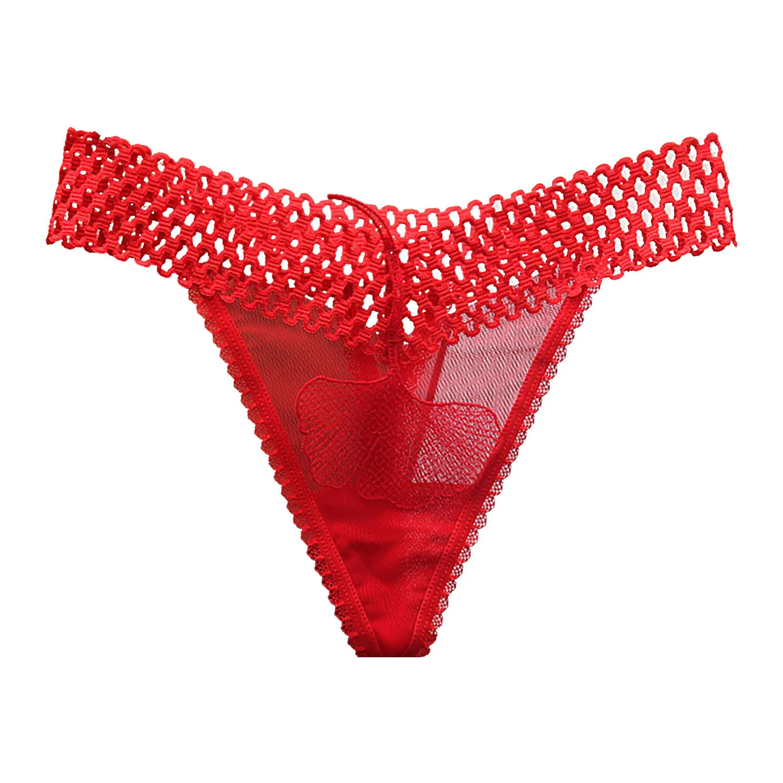 Womens Sexy Lace Panties Seamless Adjustable Low Waist Ultra Thin See Through Mesh Thong Panties